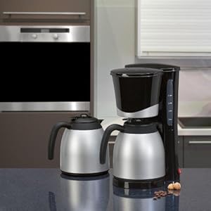 hochwertige Kaffeemaschine, 2 doppelwandige Thermoskannen, Nachtropfsicherung, herausnehmbarer Filtereinsatz, Thermoskanne für ca. je 8-10 Tassen, Wasserstandsanzeige. Mit 2-Jahres-Hersteller-Garantie.