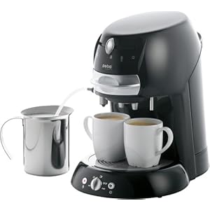 Der 1. KaffeePadAutomat mit Profi-Milchschaumeinheit: Saugt Milch an und gibt per Knopfdruck warmen, cremigen Milchschaum direkt in die Tasse.
